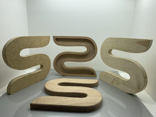Speed Plastiques propose aux pro de l’enseigne et de la signaletique la découpe de lettres bois et decoupe à la forme jusqu’à une Hauteur de 900 mm.